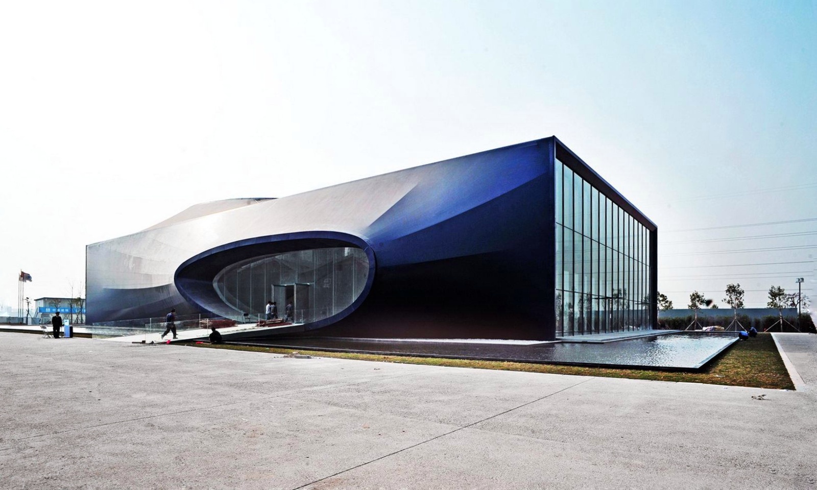 前海展示廳通過極具張力內部空間將建筑的設計語言向外迸發,對規整的建筑輪廓用開放與擴張的設計手法來體現前海的突破。建筑設計理念契合前海的氣質,寓意前海從內向外的體制改革,展示廳的每一分細節都體現著科技與未來的美感。